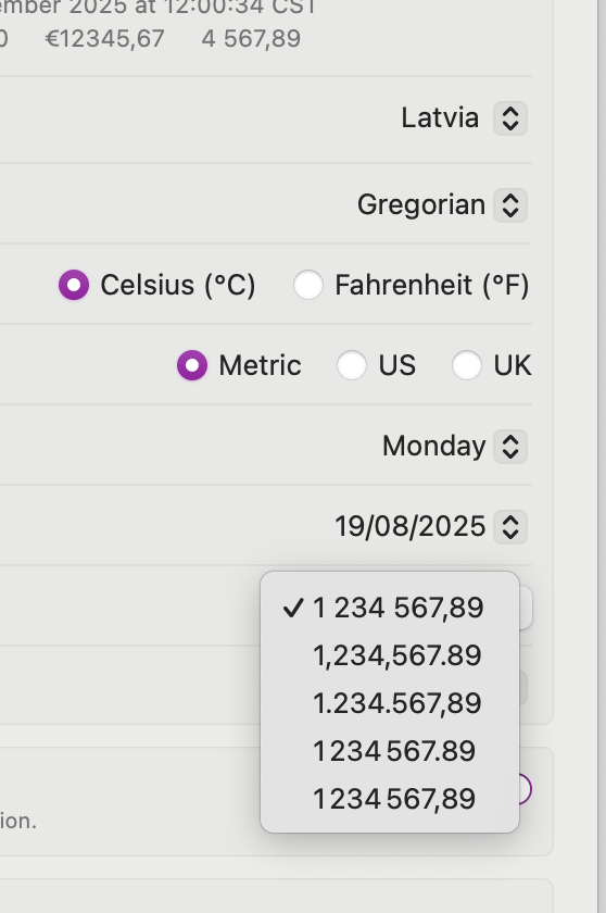 It looks like we should be smarter about detecting what the actual separator should be based on the number format and not the default one for the original settings for the Region, if that’s possible.