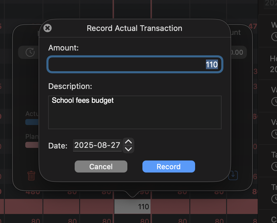 Is it possible to convert a planned transaction to an actual one with a command or keyboard shortcut? It can show a little dialog to adjust for the amount and maybe the description. In short it’ll work like “Copy transaction to actual” or “Actualize transaction now”.